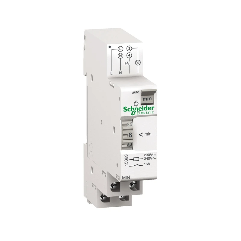 MIN elektromekanik merdiven otomatiği, 1-7dak ayarlı, 16A kontak çıkışı